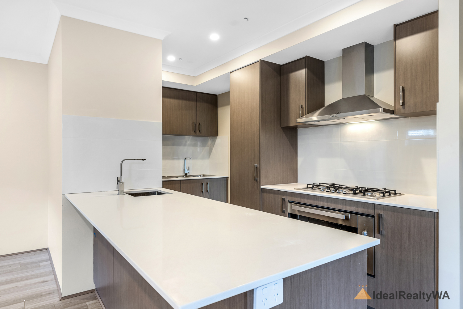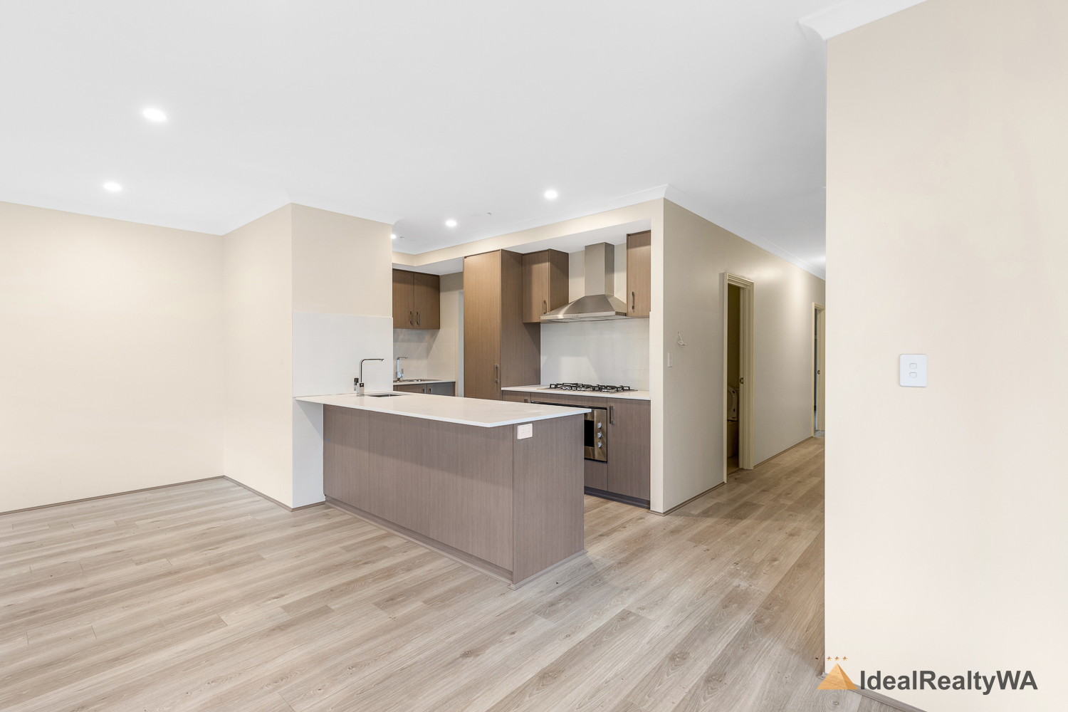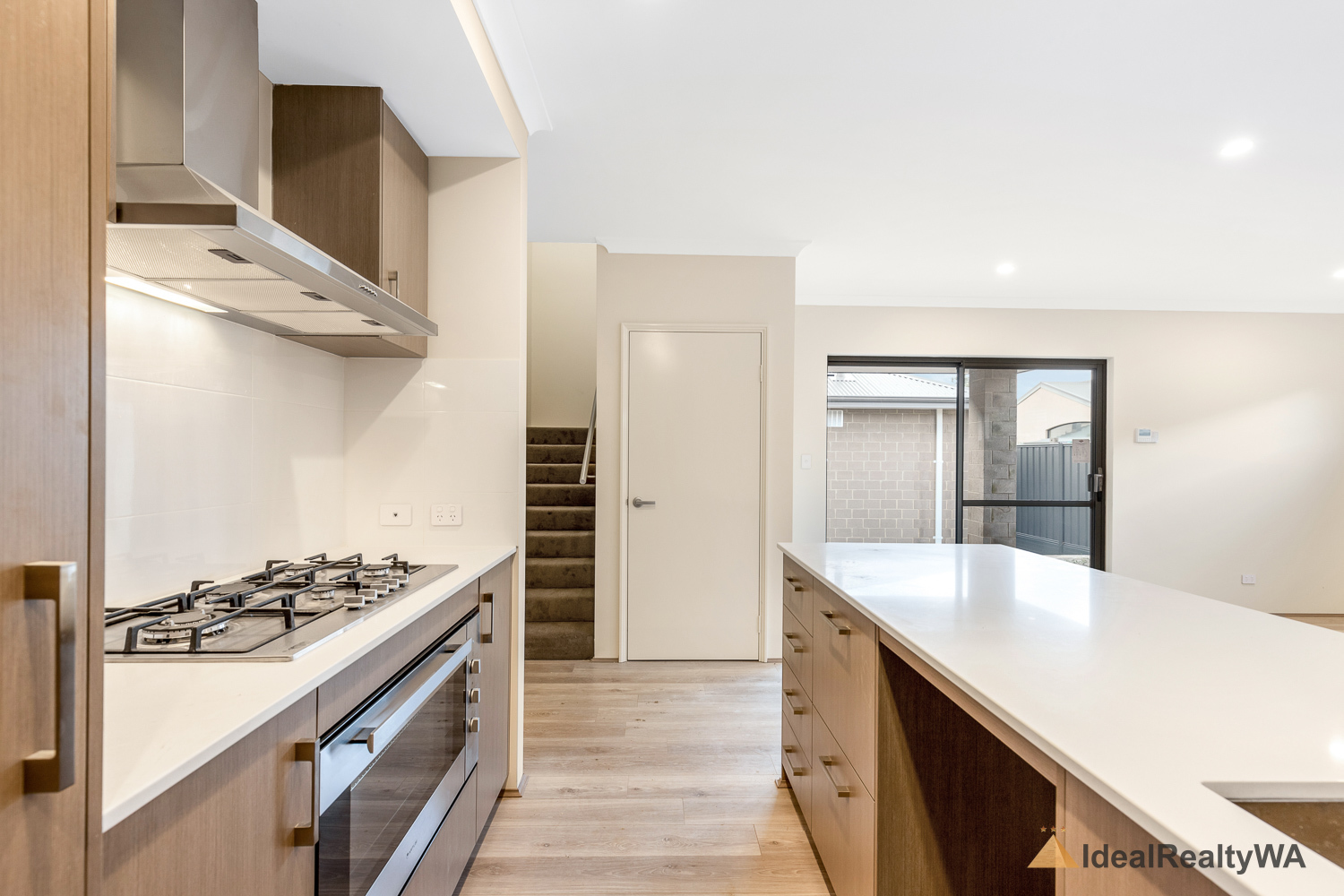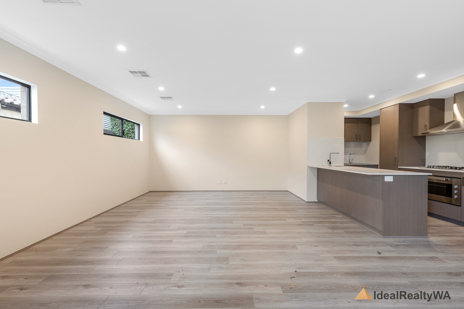 At the heart of the home is the stylish kitchen, overlooking the open-plan living area. Featuring a modern island bench, dishwasher, electric oven, and gas cooktop, this space is perfectly designed for functionality and style, with ample storage and workspace for everyday use.