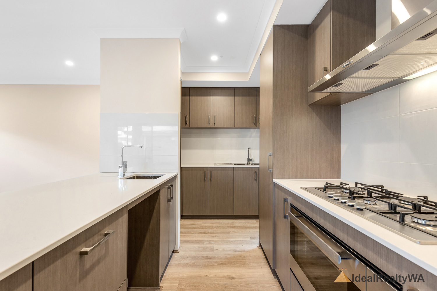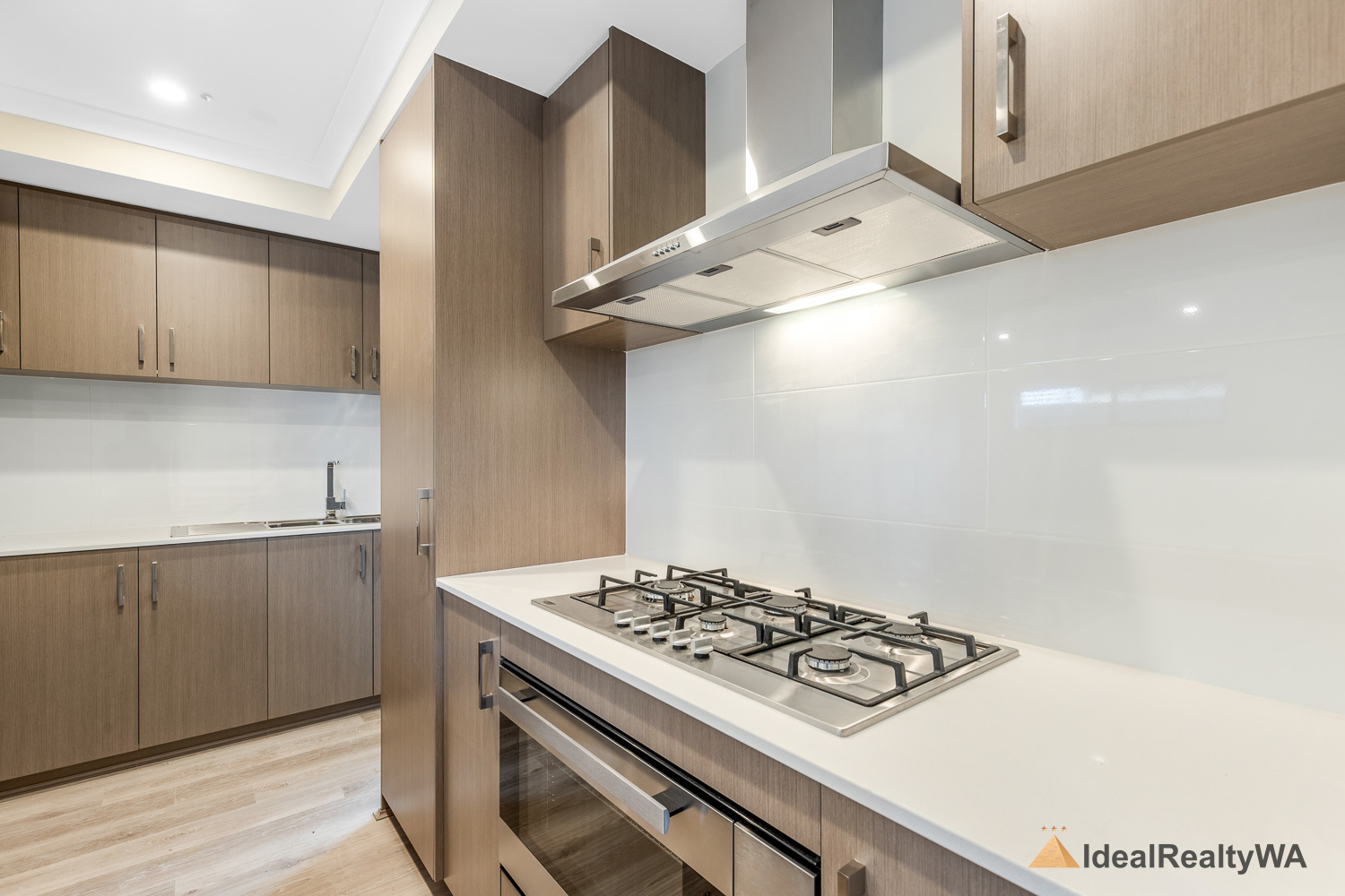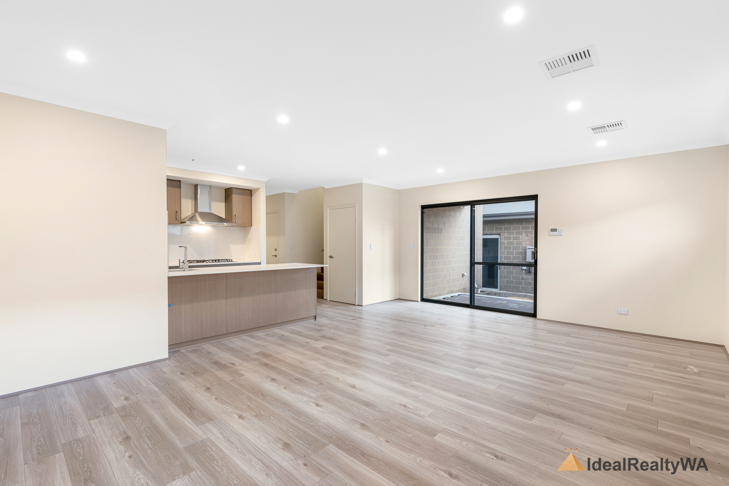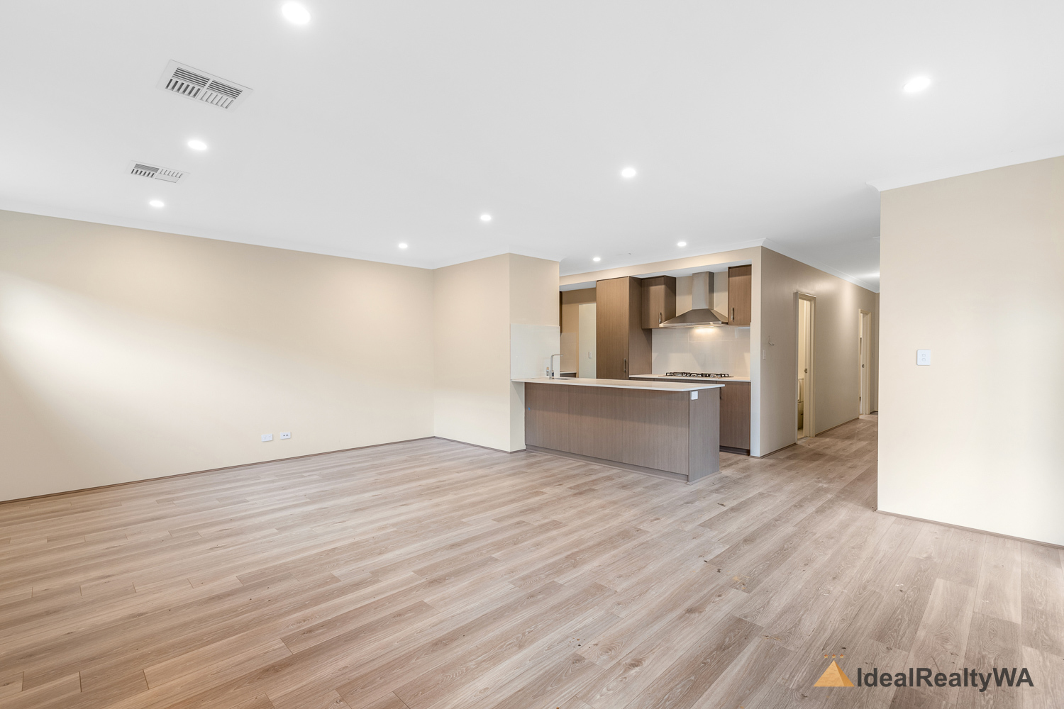 At the heart of the home is the stylish kitchen, overlooking the open-plan living area. Featuring a modern island bench, dishwasher, electric oven, and gas cooktop, this space is perfectly designed for functionality and style, with ample storage and workspace for everyday use.