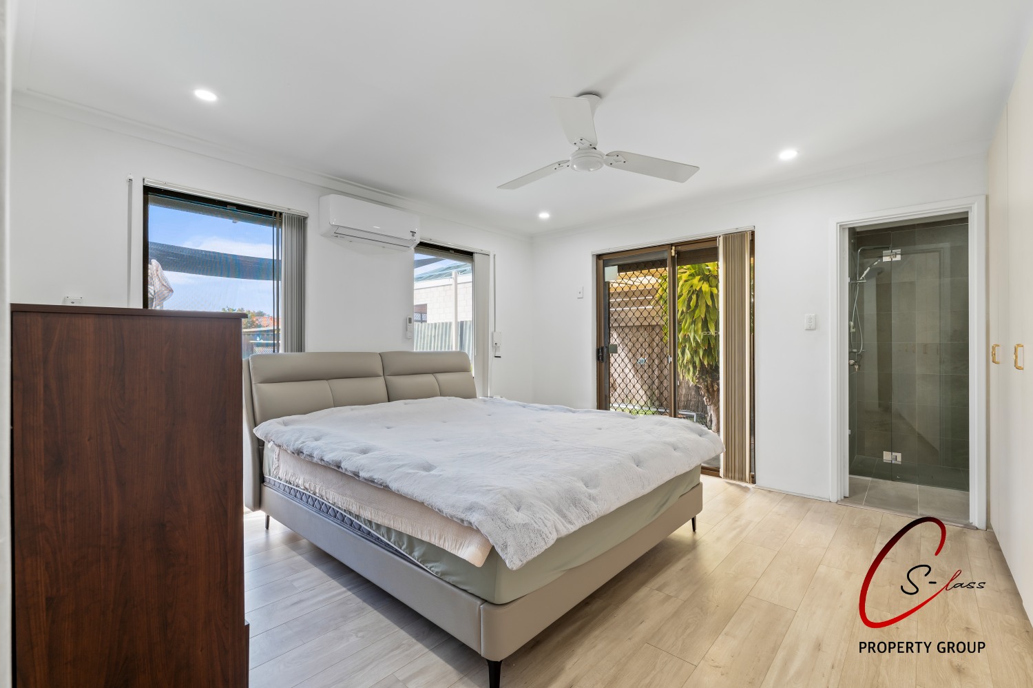 Through the french door, there are 4 bedrooms including a master bedroom with fully renovated en-suite. The master bedroom has plenty of storage space and bedrooms contain split aircon, a ceiling fan and built-in robe.