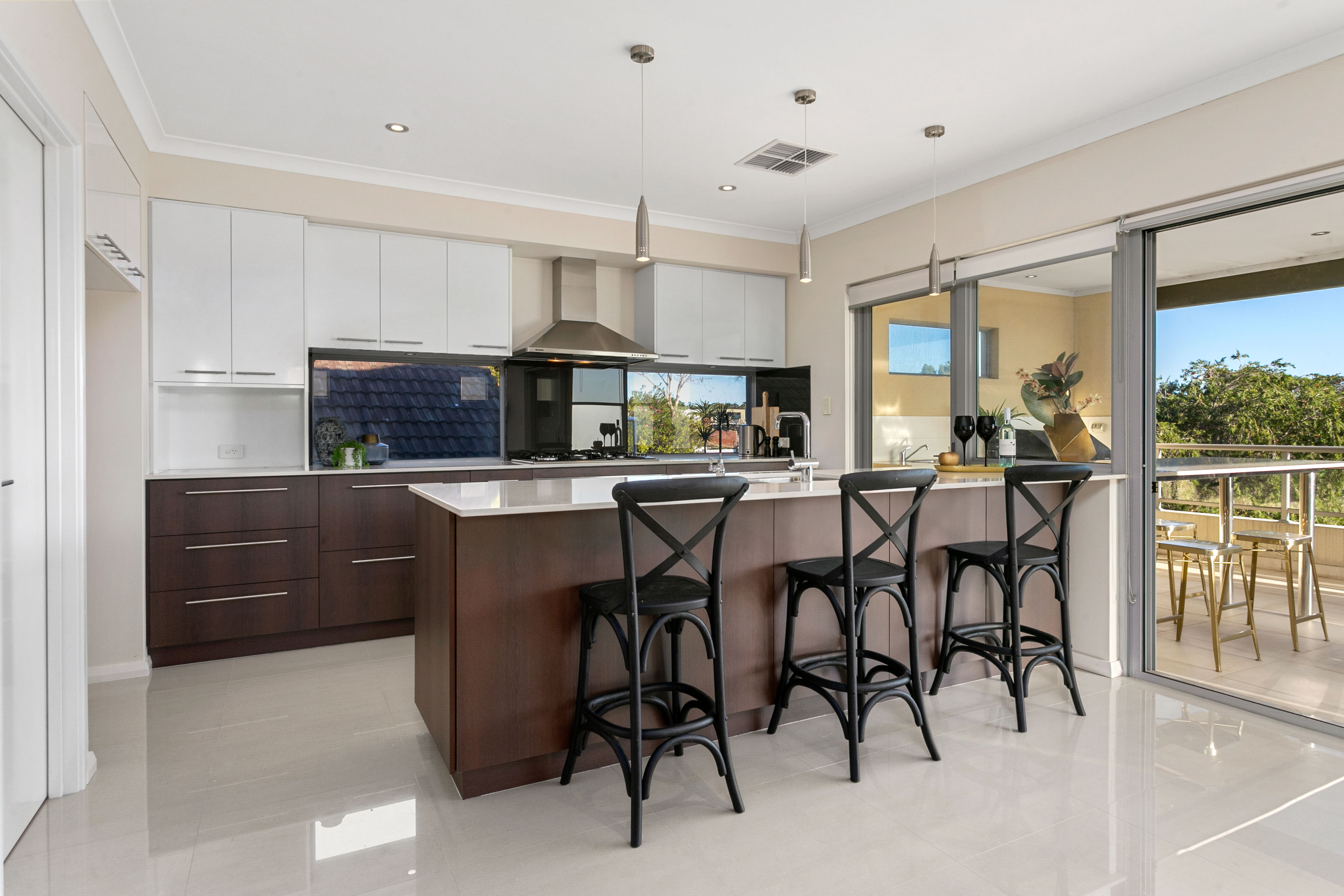 The appealing kitchen, situated on the first floor offers a comanding view of its location and is adjacent to the spacious balcony from which one can relax in, have an informal meal and enjoy views of spectacular sunsets that the location offers.