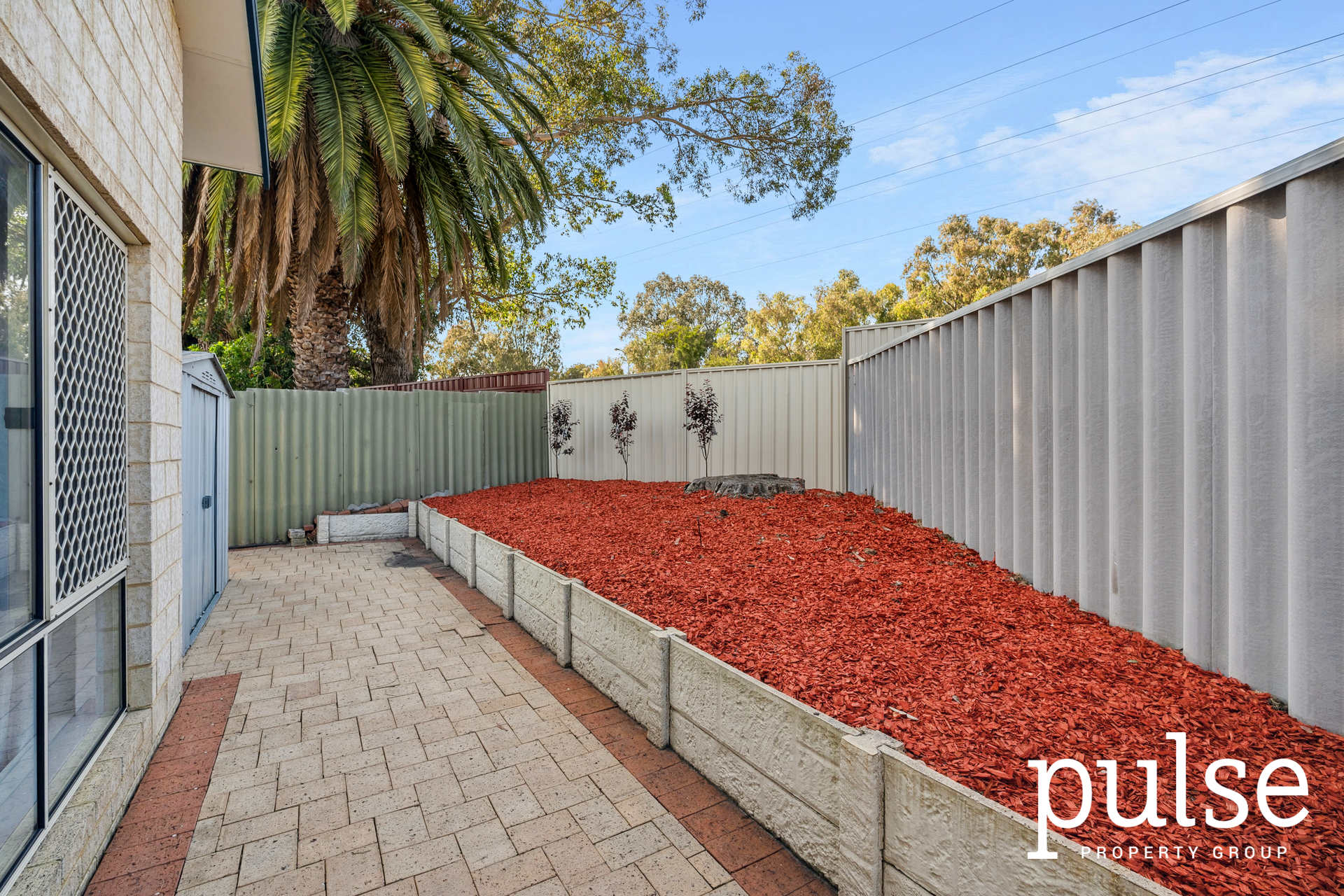 FEATURES & BENEFITS • Survey-Strata title (similar to Green Title) of 570sqm • Potential rental return of $800 - $900 per week • Rear property, offering a private and secure lifestyle • Set within the highly sought-after Rossmoyne Senior High School zone • Huge lounge/dining room at the front of the home • Open plan kitchen and dining/family area, featuring a brand new electric cooktop, a double pantry, plenty of bench and cupboard space, and a dishwasher recess • Large main bedroom suite with triple built-in robe, huge ensuite, and sliding door access to the side courtyard • Two great-sized minor bedrooms, both with triple built-in robes • Lovely main bathroom with plenty of storage and vanity space • Spacious laundry and toilet • Mediterranean style pergola, alfresco & garden beds, perfect for entertaining • Large garden shed • Single garage with room to park additional vehicles in the driveway • Ducted evaporative air conditioning throughout • Gas hot water system • Reticulated gardens