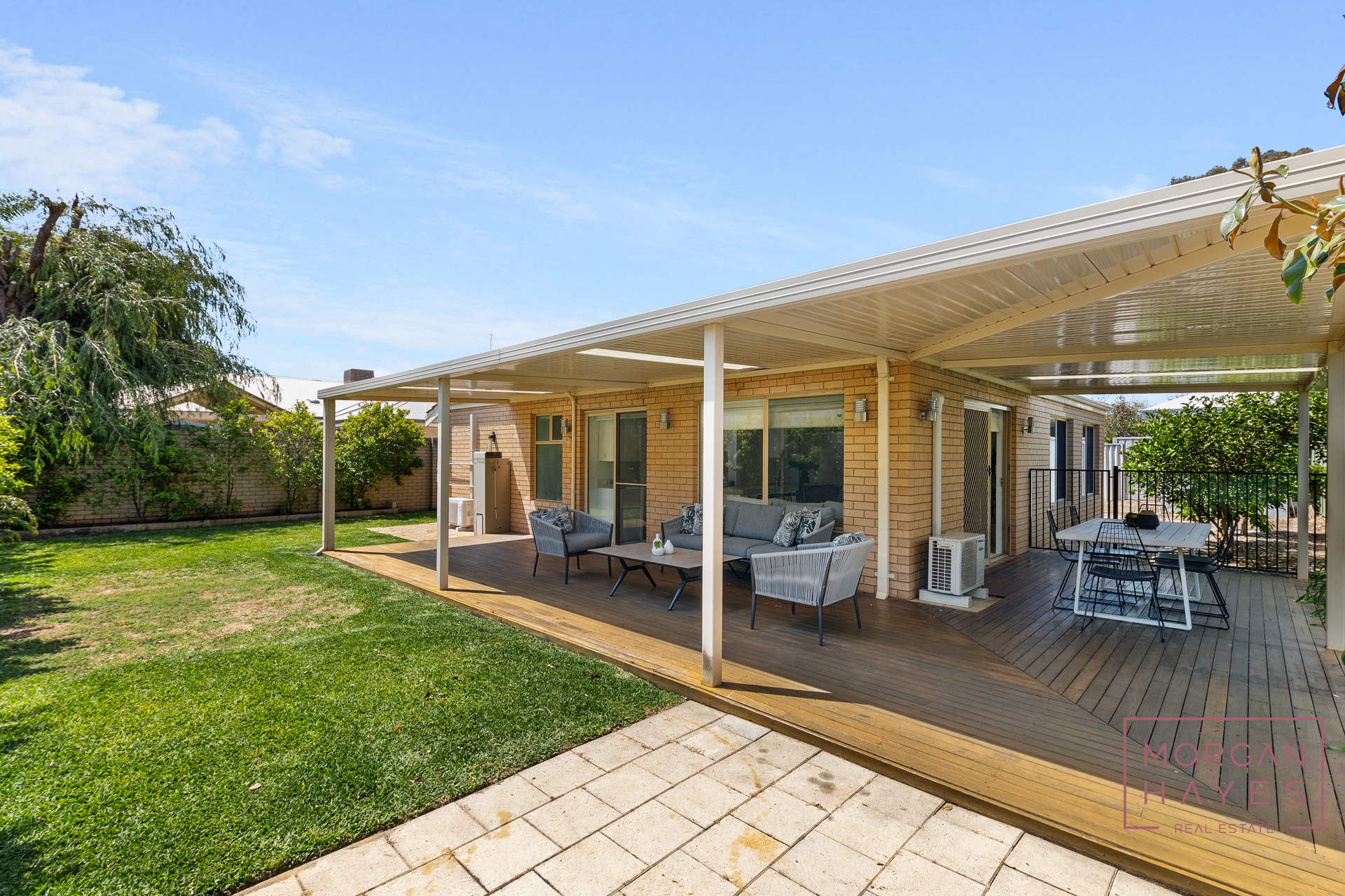 At the heart of this home is the open-plan kitchen, living, and dining area. With modern appliances and a split system reverse cycle A/C, this space is ideal for entertaining and everyday family life. The flow from the indoors to the outdoors is seamless, leading to the expansive wrap-around patio with timber decking style flooring, perfect for hosting guests or relaxing with family. Some of the rear is sectioned off by a pool style fence making it safe for the furry family members to relax and play outside.